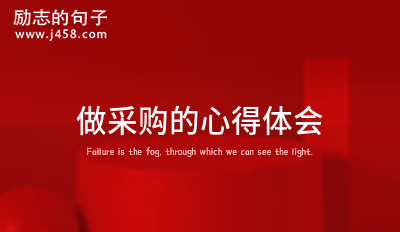 透过撰写经验心得,可以帮助我们将来少走弯路。哪种经验心得才能触动人心呢?今天励志的句子的编辑向大家推荐一篇关于“采购员心得体会”的优秀文章,希望这篇文章能够帮助解决您所面临的问题!...